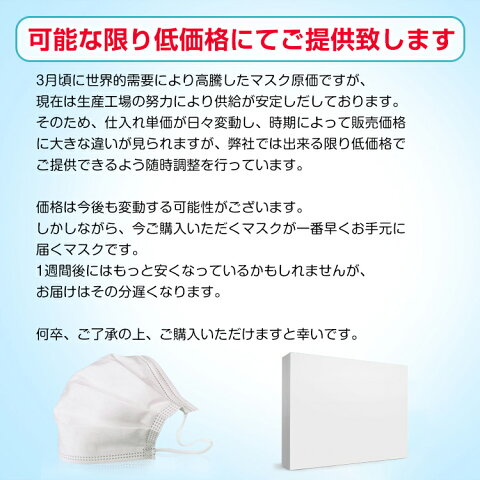 ○以上、ご同意の上ご購入ください!○名称・内容 ・商品内容:不織布マスク 種類・サイズ ・サイズ:(約)17.5cm×9.5cm 重量・耐久 その他 ・素材:メルトブローン不織布 注意・説明 ※ご返品交換など一切お断り致します。