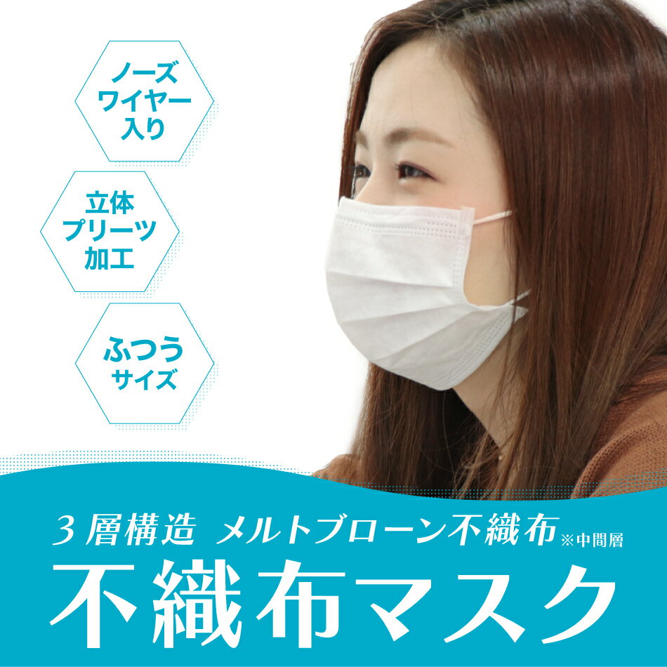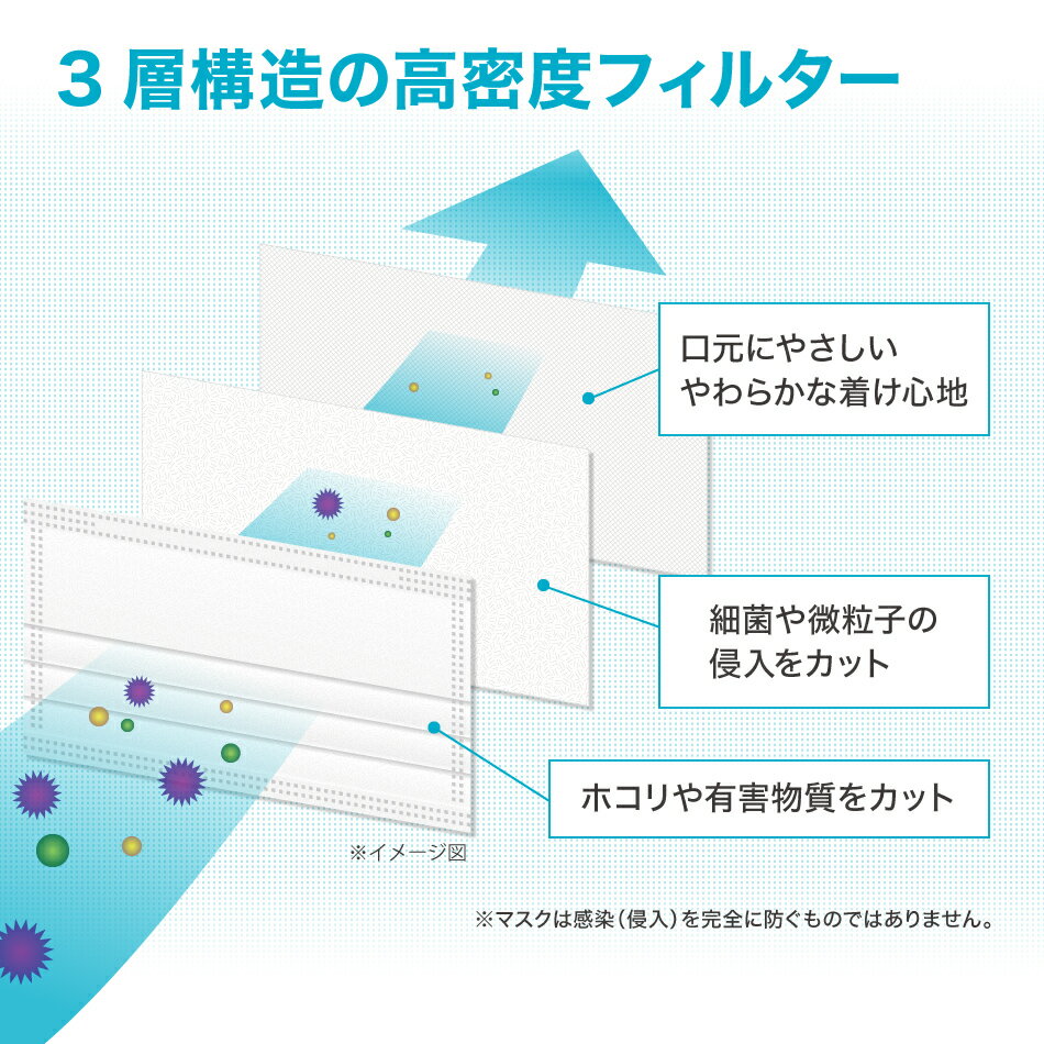 3層の不織布構造でウィルス飛沫、ほこり、花粉等のミクロ粒子をシャットアウト。