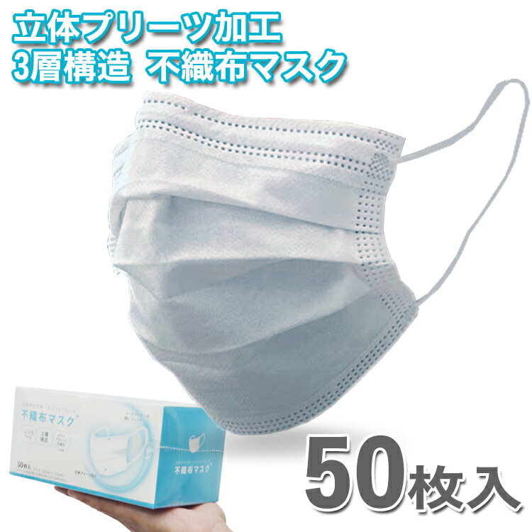 【店内最大ポイント42倍!23日10:00〜25日23:59まで】 【在庫あり】 不織布三層マスク レギュラーサイズ(50枚入) 白 ホワイト 箱 不織布マスク ふつうサイズ 大人用 使い捨て 立体3層 ノーズワイヤー 花粉症 ほこり