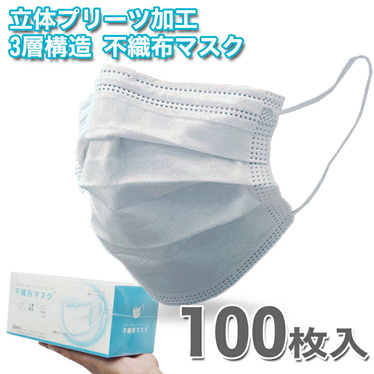 【あす楽対応】マスク 100枚 国内発送 不織布 3層 ふつうサイズ 使い捨てマスク 日本 発送 業務用 個人使用 立体プリーツ 国内発送 国内検品 清潔 箱包装 抗菌 おとな マスク 100枚