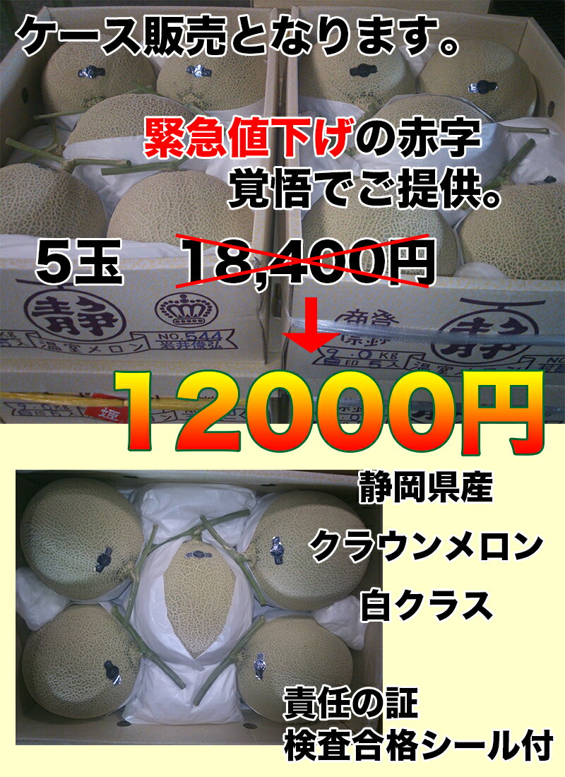 大幅値下げ 高級ブランド 静岡県 クラウン メロン 白クラス 1箱 5個入り 約8kg 18400円 を 12000円 送料無料 ギフト